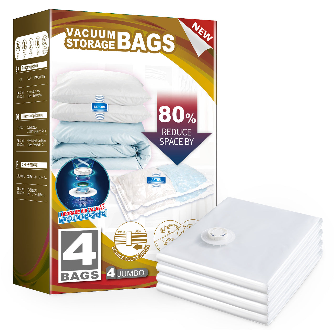 Save More Storage Space: Using our space saver bags, you can free up more space for your wardrobes closets, suitcases, and also a good choice for storage under the bed. Saving more space and time for your home or travel