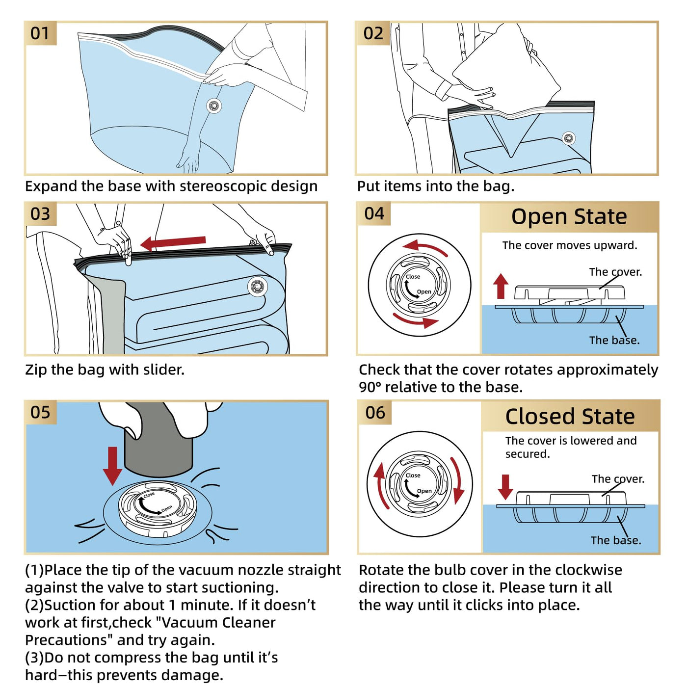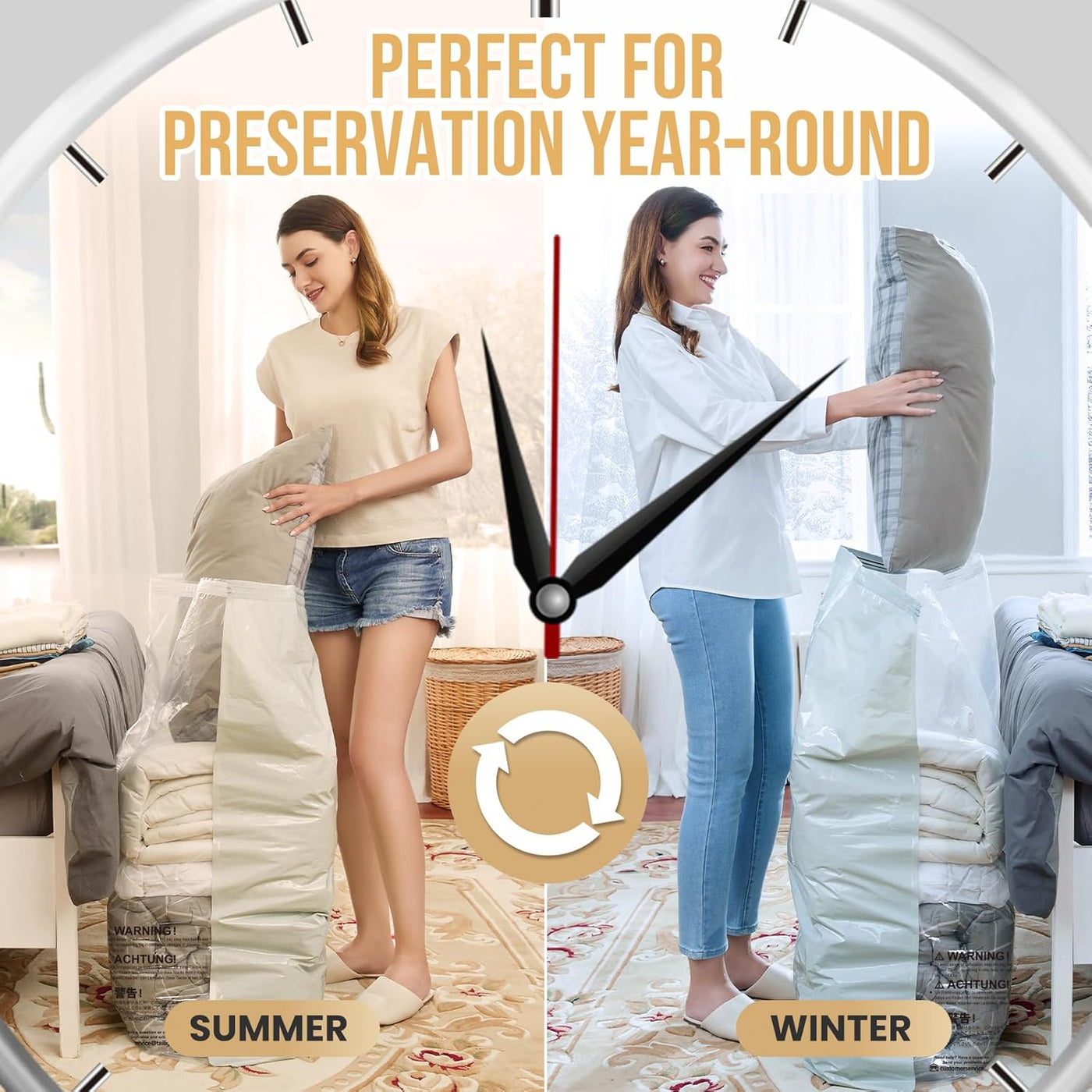 Meets Different Requirements: Our bags are made of strong material to meet various purpose such as bedroom storage, moving storage, college dorm room essentials storage closet organizers and storage. It will be more convenient to seal the space saver vacuum storage bags by using the clip in the bags