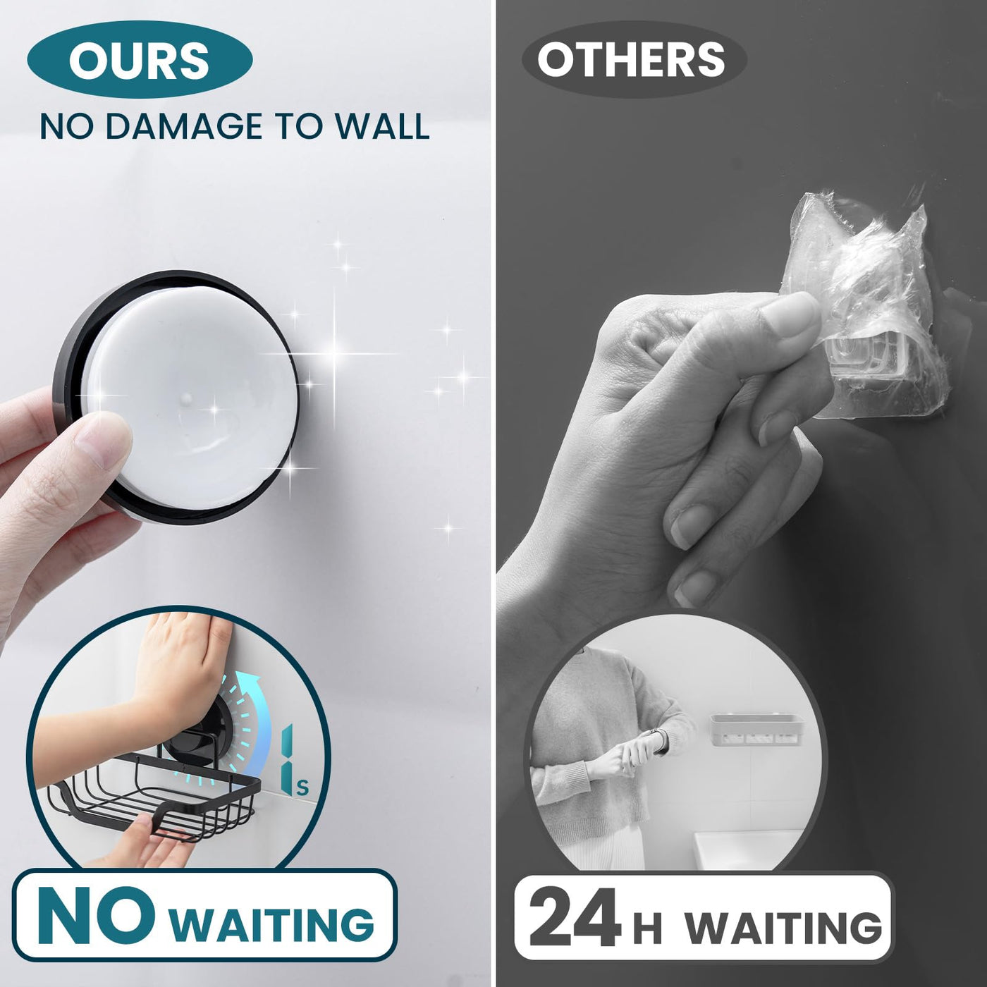 EASY INSTALLATION: Simply press down the suction pad to squeeze the air out, they will stick to the wall firmly. You can finish the installation in 1 second. No screws, nails, glue or tools required for installation. (Please clean the wall and keep it dry, pay attention to avoid installing at the tiles with gaps to ensure vacuum suction)