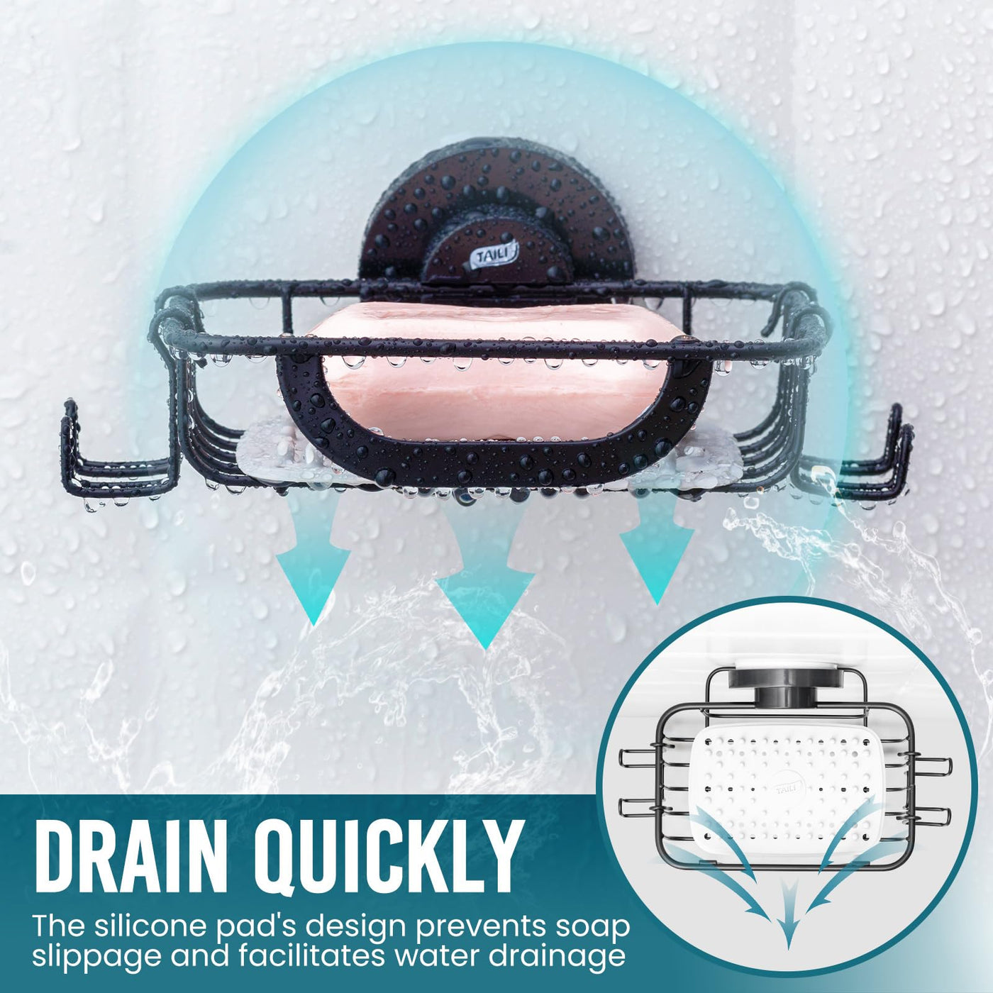 TAILI Line Series Suction Soap Holder with Hooks