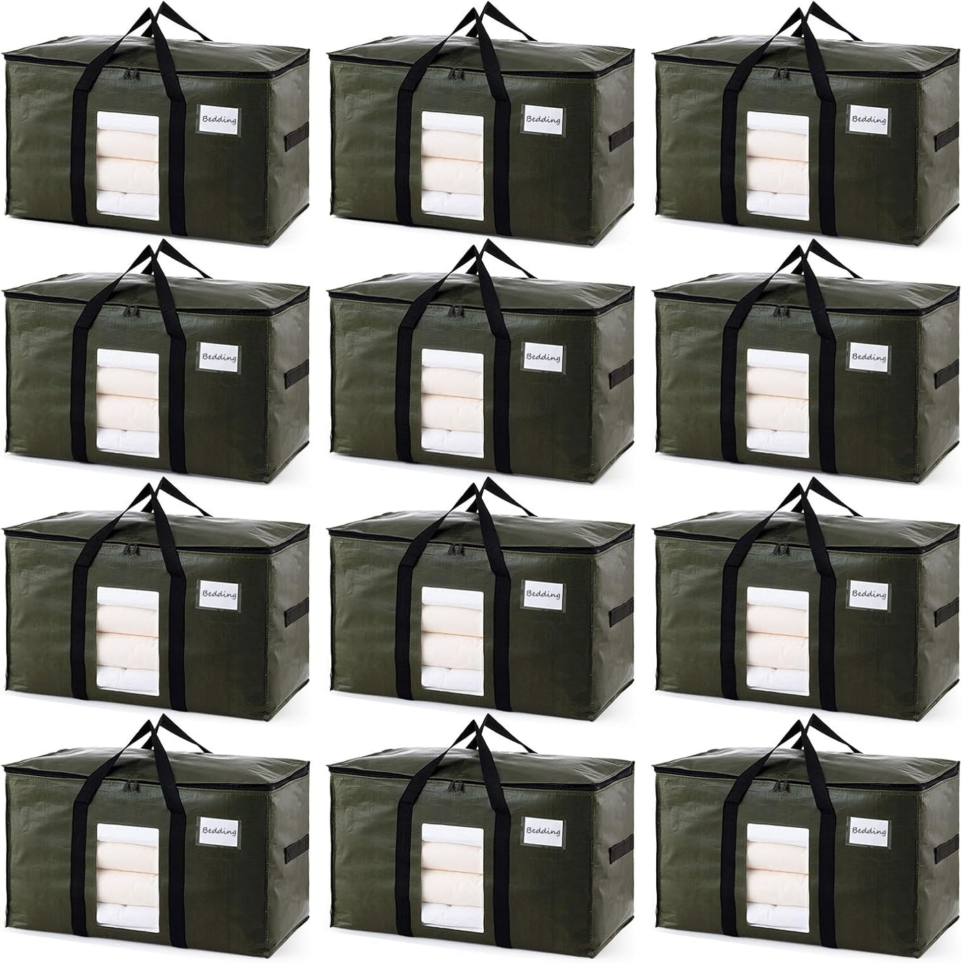 [Durable & Heavy Duty]: Each extra large storage bags is made from PE woven material,which is waterproof and tear resistant, Different from other bags on the market, our bags use 3-layer sewing technology to deal with zipper, long carry handles, and side straps, to ensure that the bag body has sufficient load-bearing capacity and tear resistance