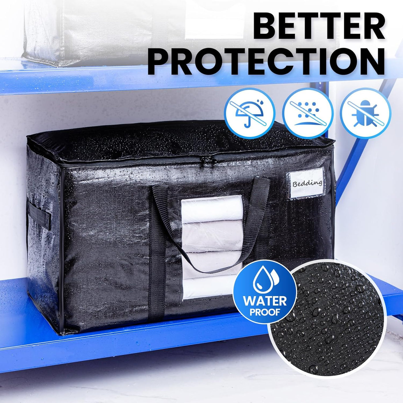 [Durable & Heavy Duty]: Each extra large storage bags is made from PE woven material,which is waterproof and tear resistant, Different from other bags on the market, our bags use 3-layer sewing technology to deal with zipper, long carry handles, and side straps, to ensure that the bag body has sufficient load-bearing capacity and tear resistance