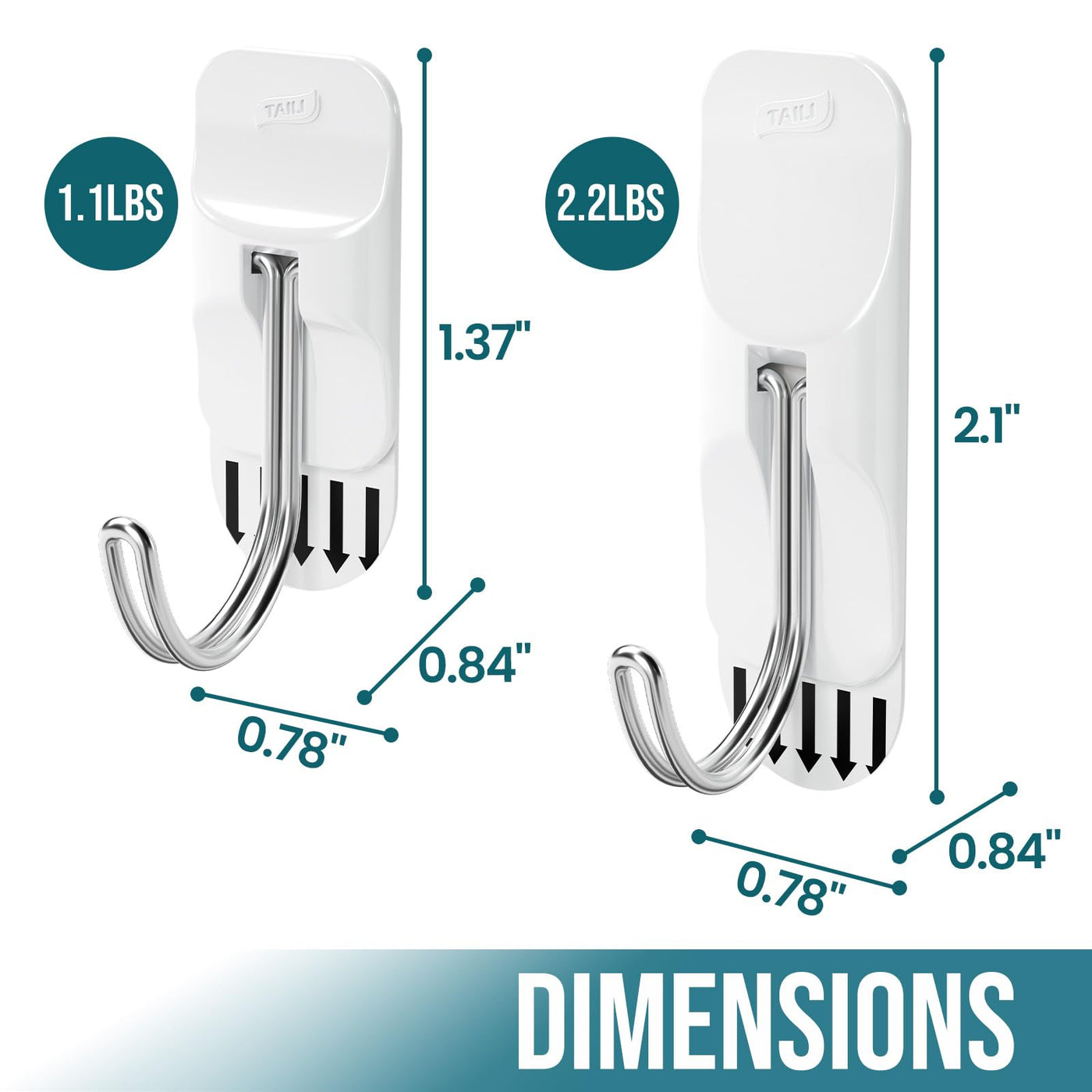 Includes: 10 small hooks and 12 adhesive strips; 1 small hook holds 2.2 lb