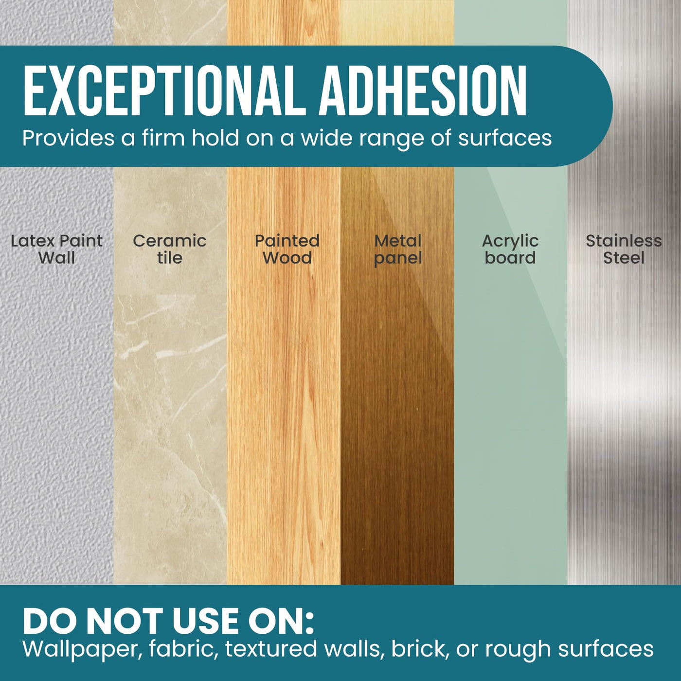 Wide applications: The adhesive hooks strongly mount on a variety of surfaces including tiles, painted walls, finished wood, painted concrete cinder blocks, laminate, glass, metal and other smooth surfaces