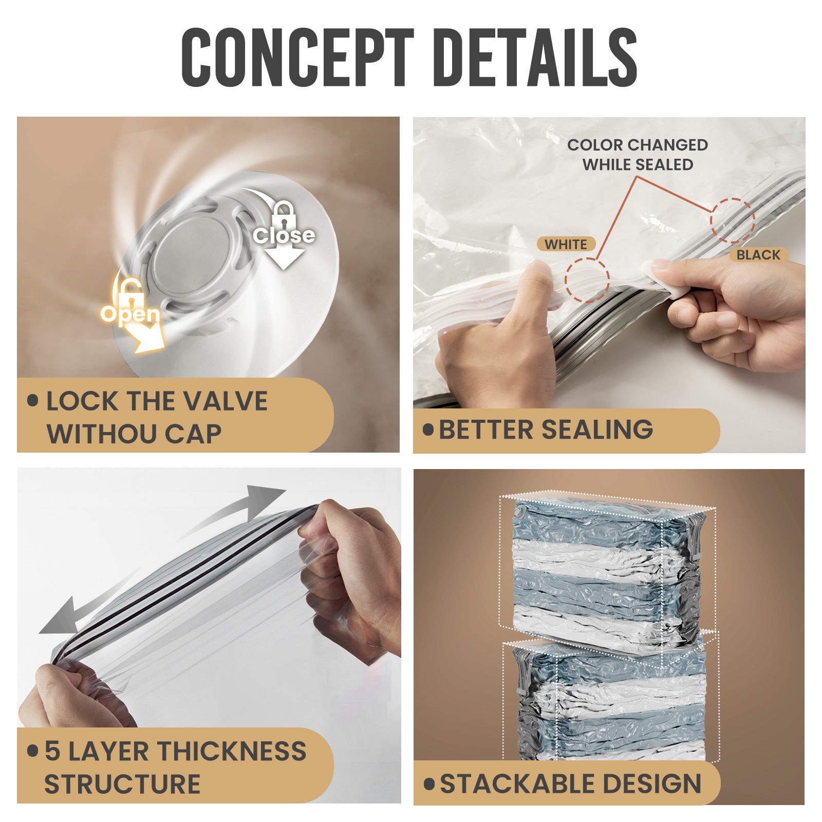 6 Pack Frosted Cube Vacuum Space Saver Bags Jumbo Size (31x40x15 inch), Durable & Reusable