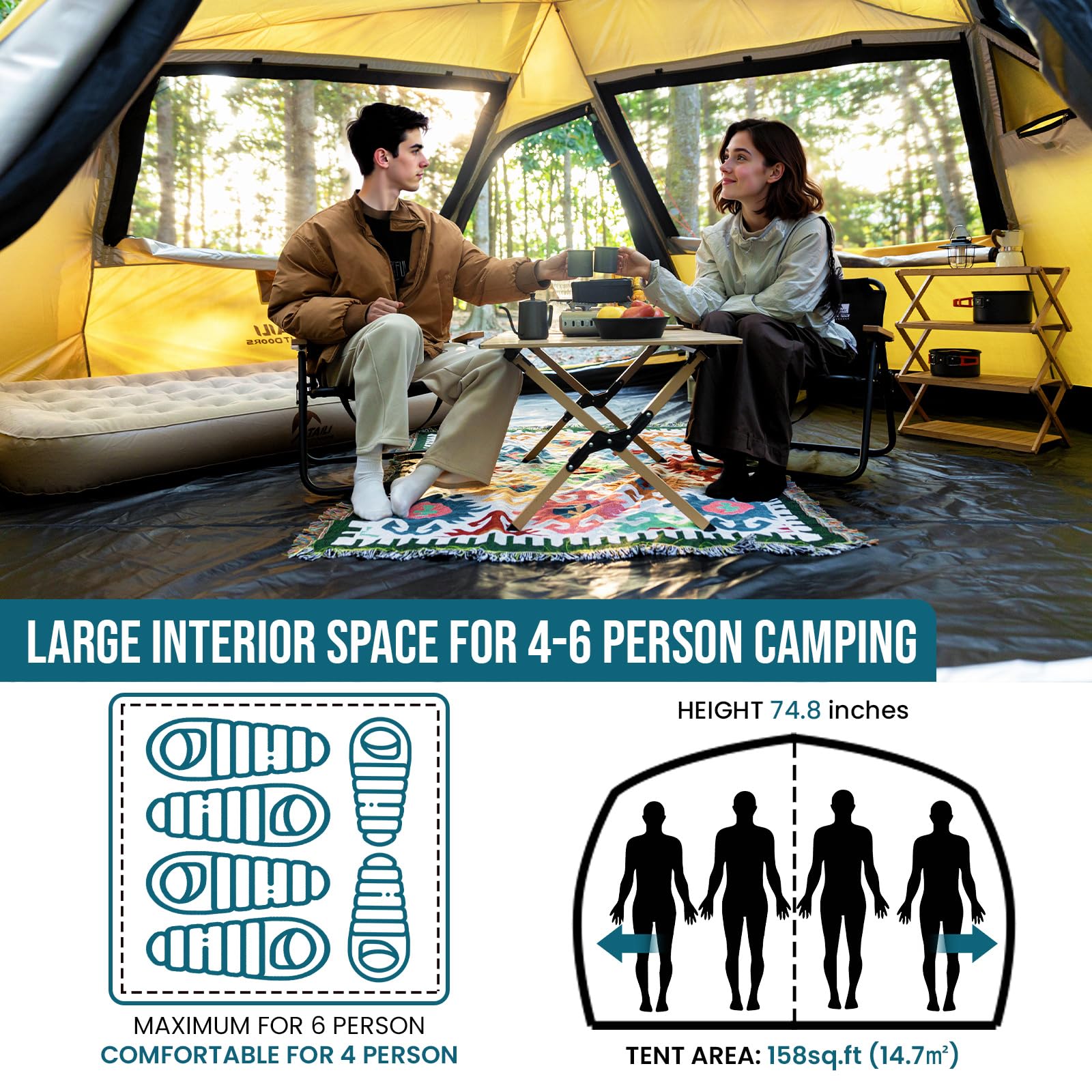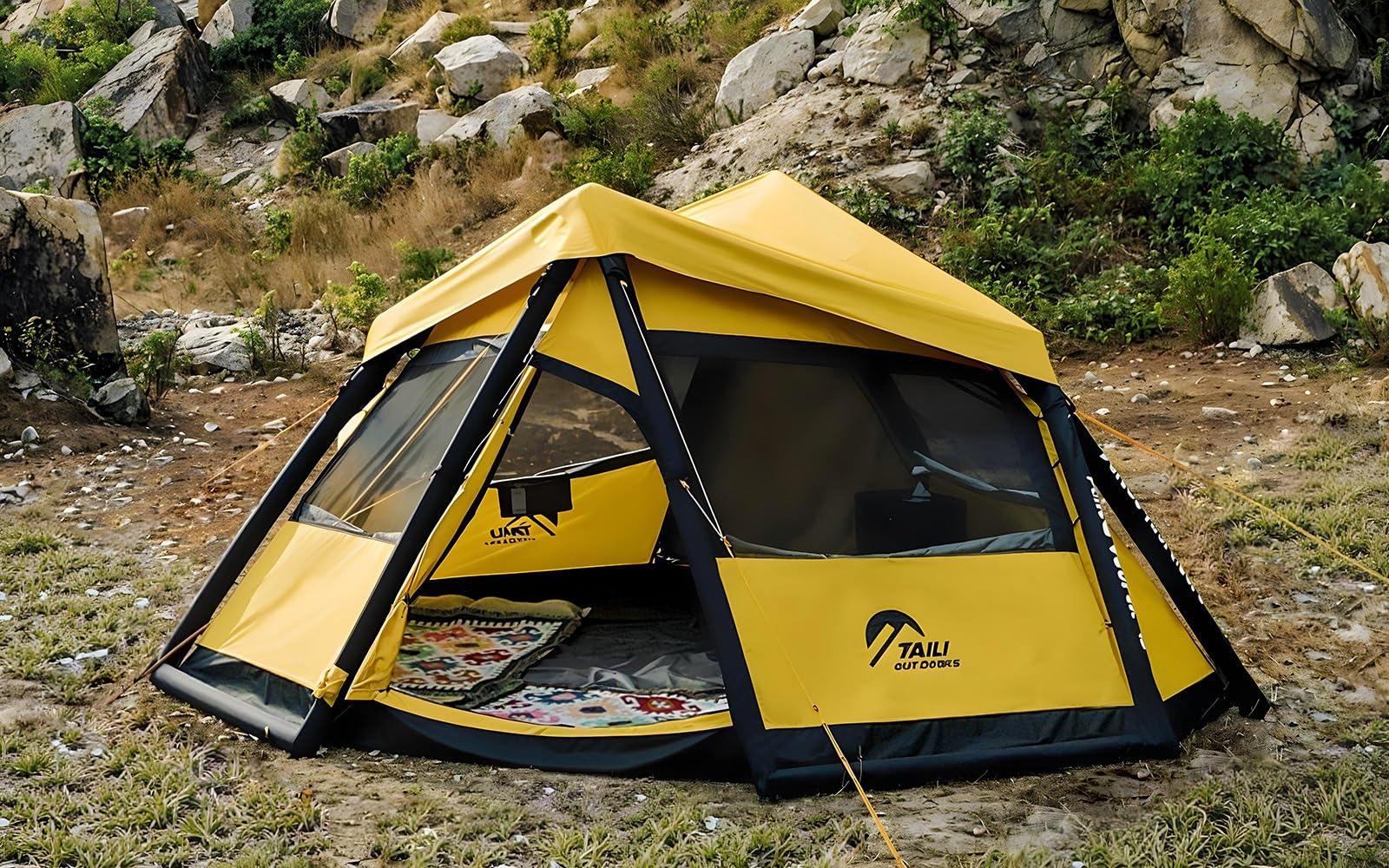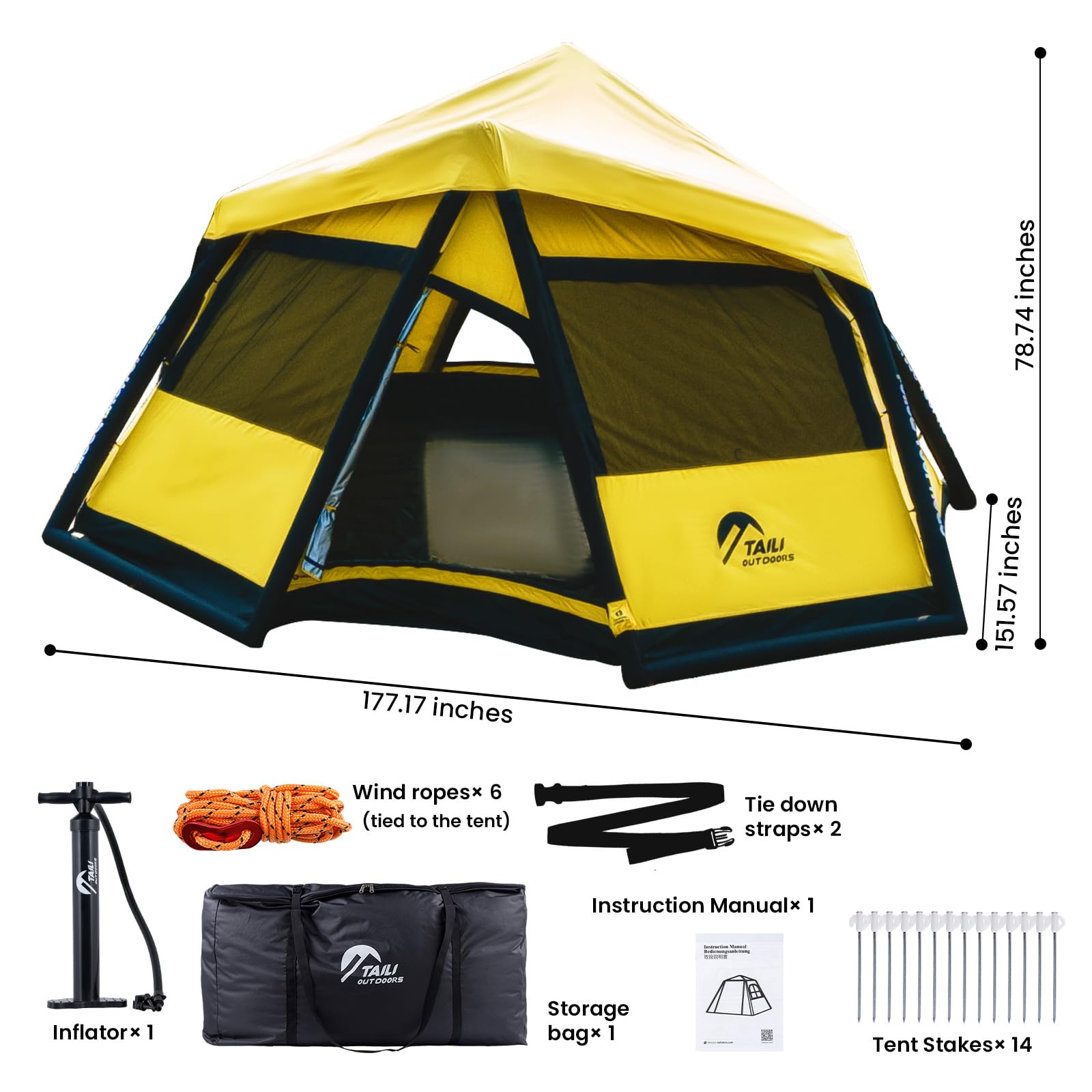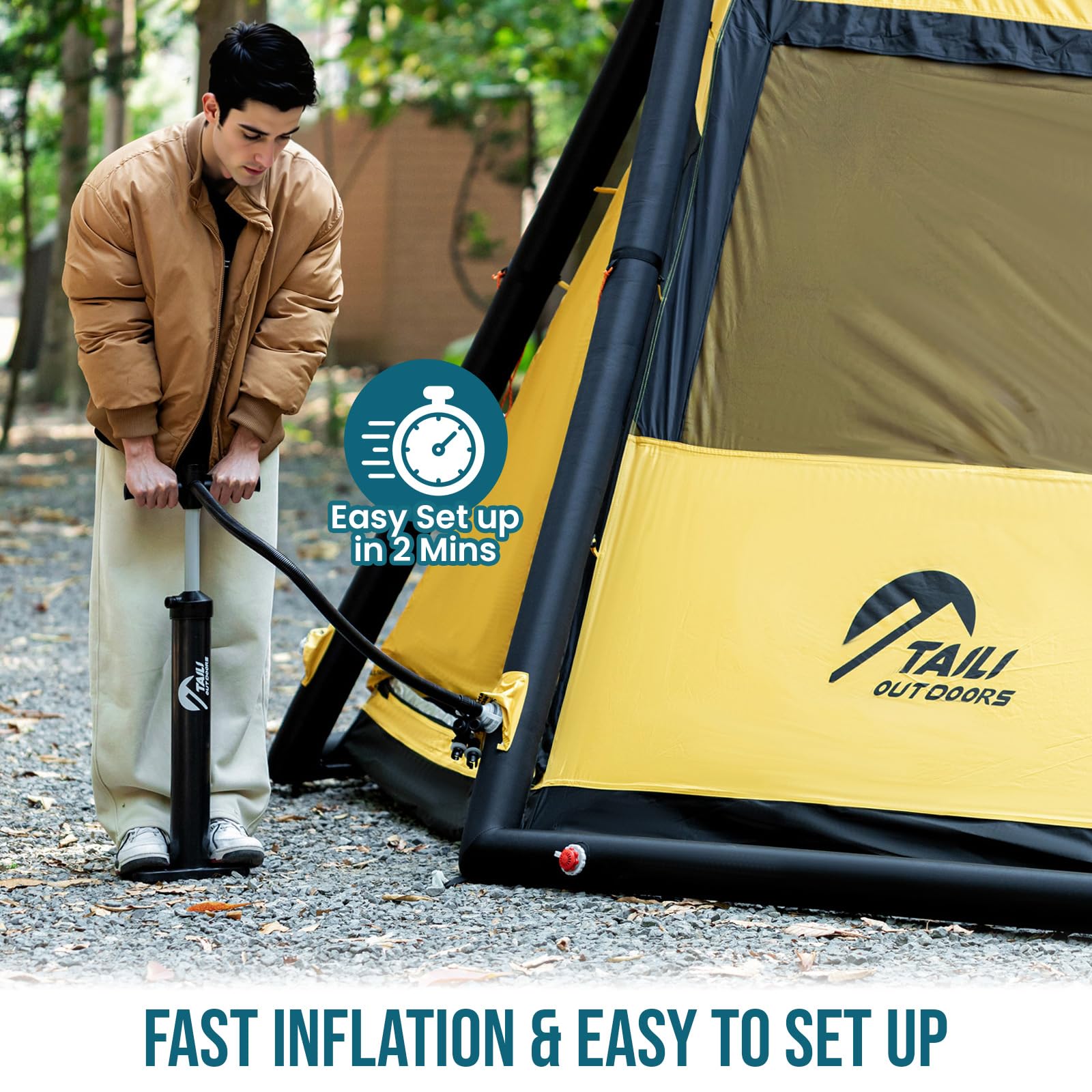 TAILI Inflatable Blow Up Tent for Camping with Hand Pump for 2/4/6/8 Person, Easy Setup Outdoor Inflatable Oxford Waterproof Air Tent House for Family Camping Adult