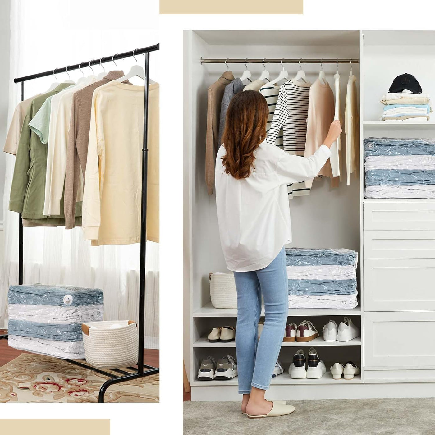 Better Protection: These vacuum sealer bags protect your bedding and clothing from dust and water. Our jumbo cube vacuum storage bags are waterproof and airtight and save more space in wardrobes, closets, garages, basements, storeroom, checkroom, lofts and suitcases