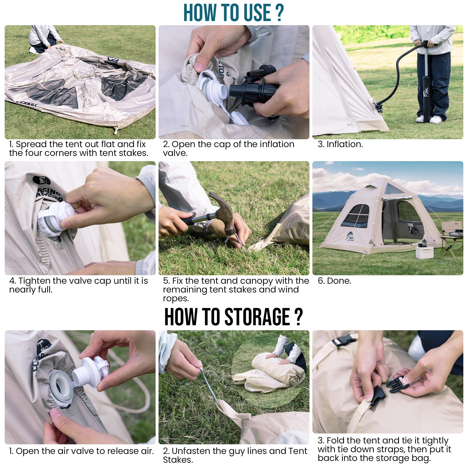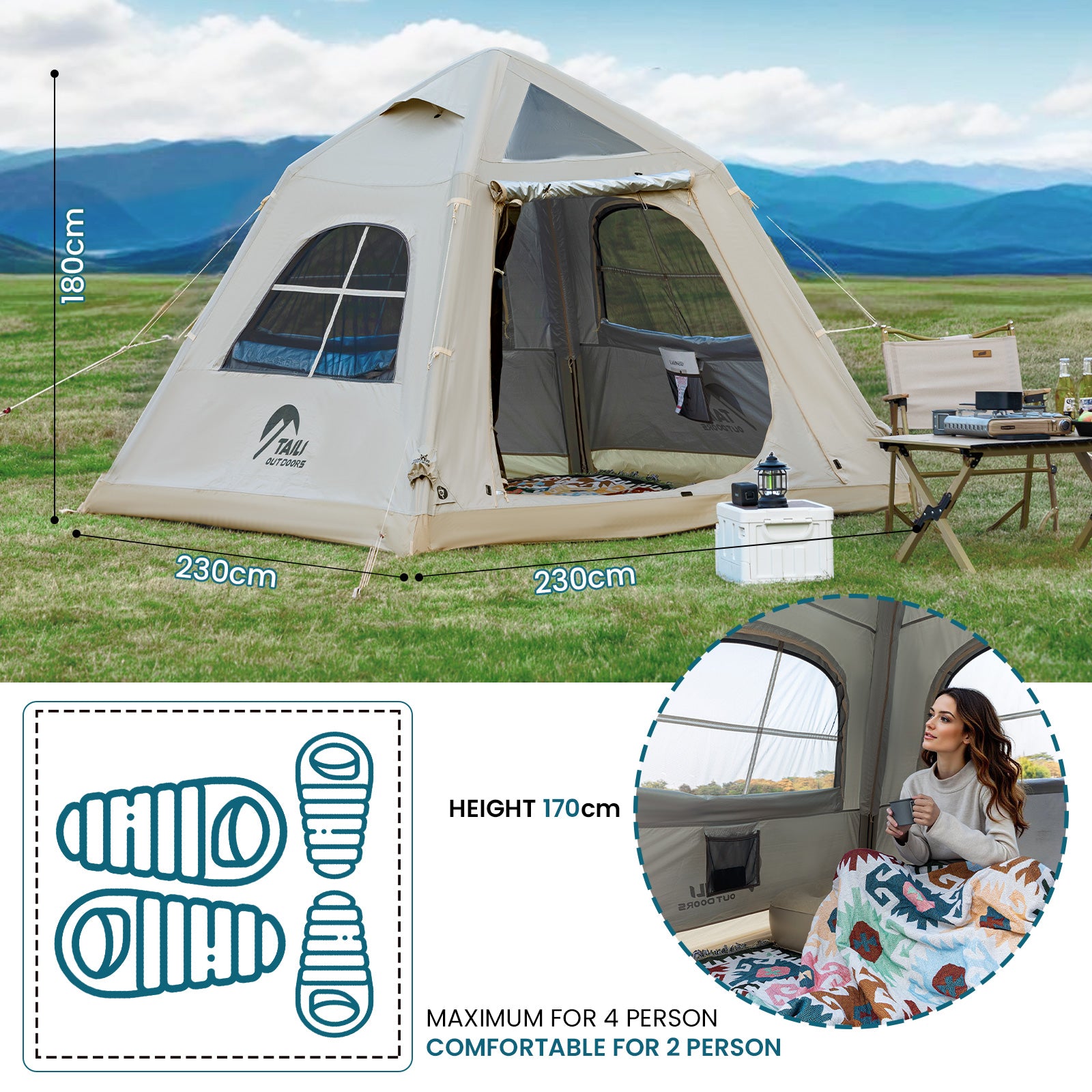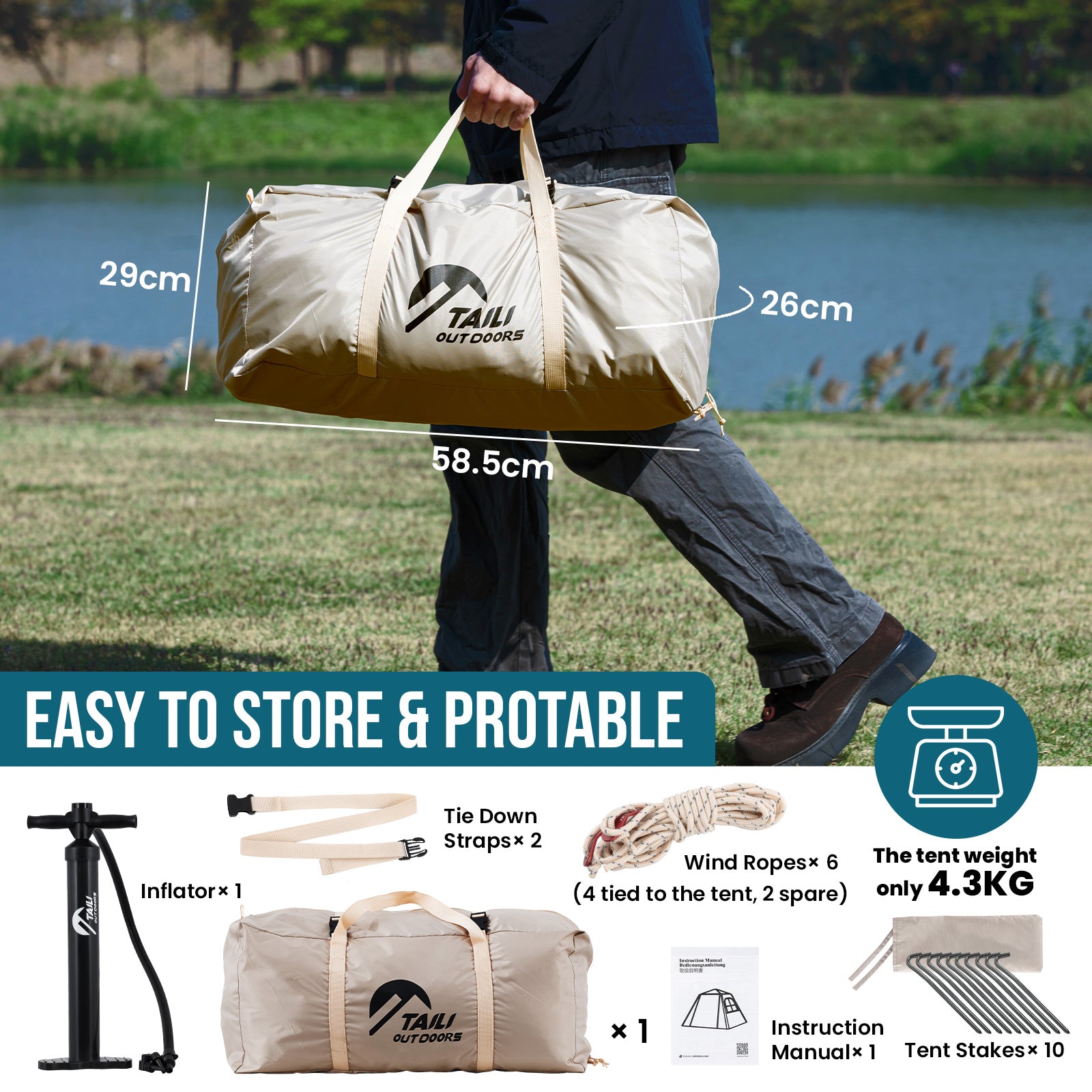 TAILI Inflatable Blow Up Tent for Camping with Hand Pump for 2/4/6/8 Person, Easy Setup Outdoor Inflatable Oxford Waterproof Air Tent House for Family Camping Adult