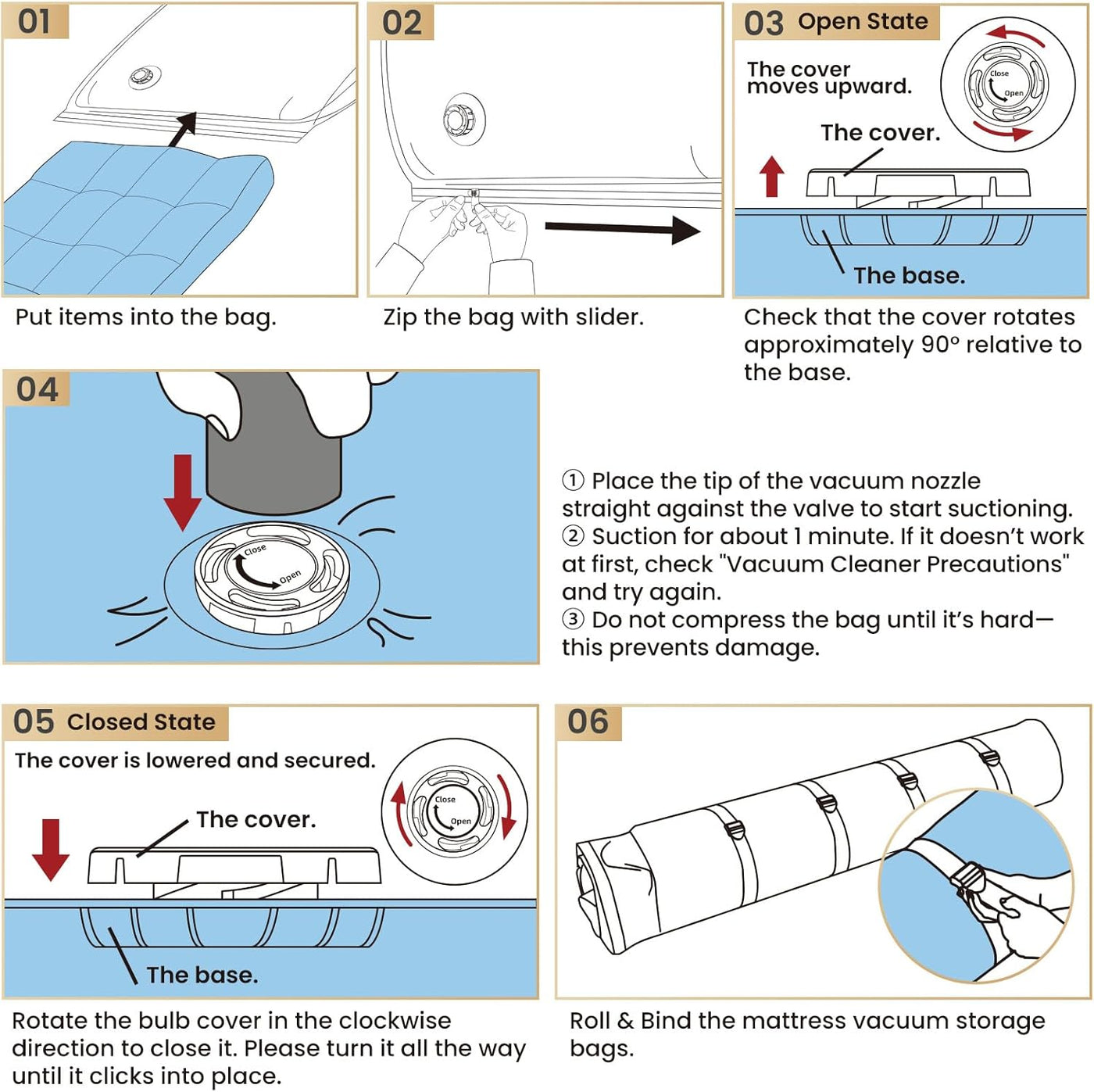 Quick Vacuum-Powered Compression: Works with any standard vacuum cleaner. Simply insert mattress, seal the dual zipper, attach vacuum to the valve, and compress in minutes. Saves up to 3x the space for efficient moving or seasonal storage.