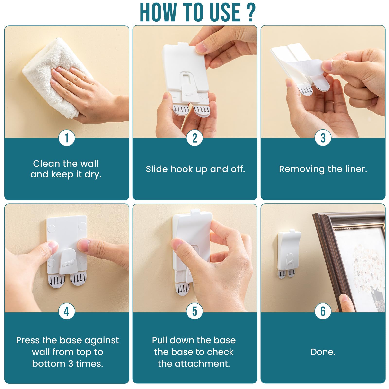 TAILI Picture Hangers 4 Pcs(10 Strips), Damage Free Picture Hangers for Walls,Adhesive Picture Hanging Hooks Without Nails,Art Hanger for Bathroom Kitchen Home Door Closet-White