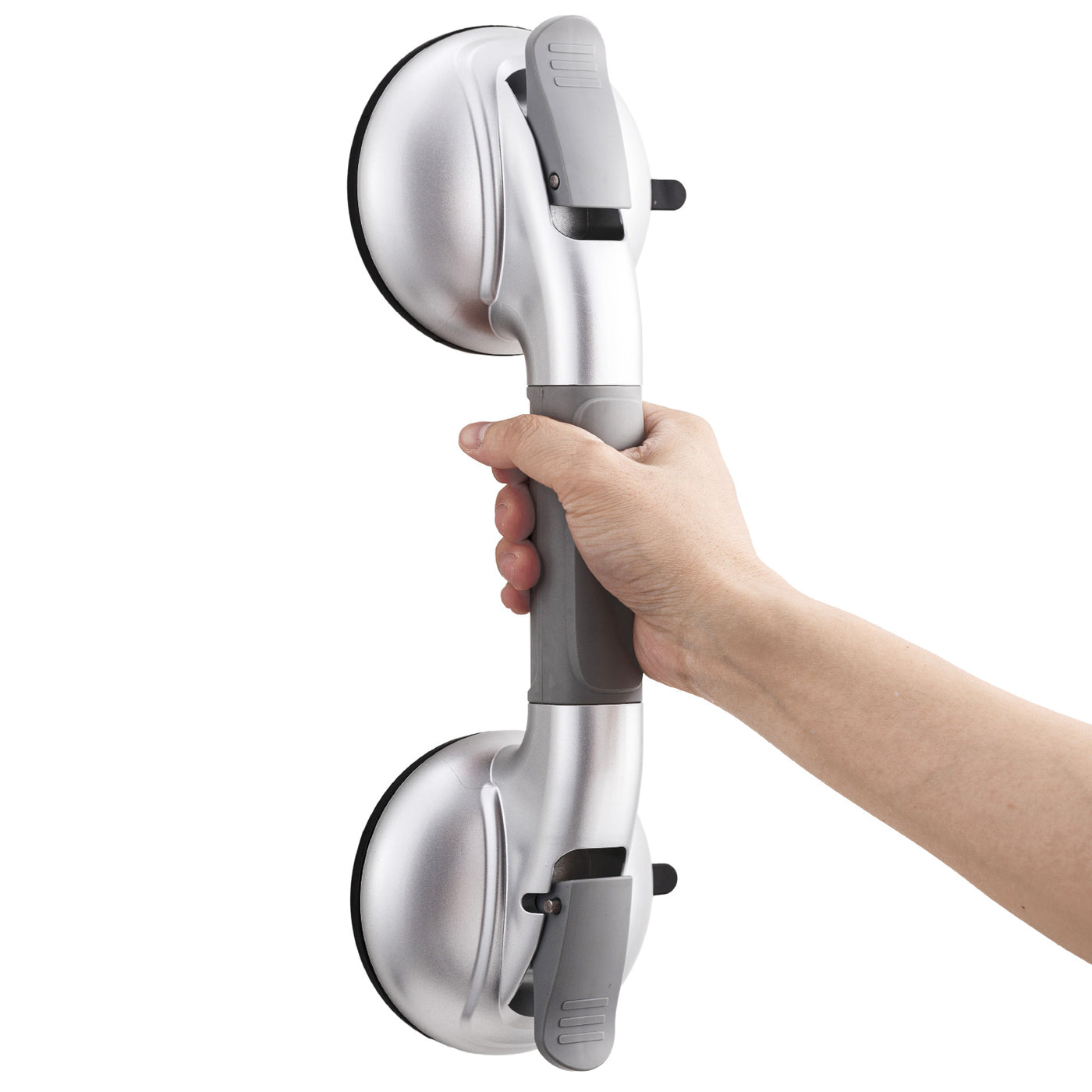 Maximum load capacity: 330 lbs. This Taili shower grab bar uses upgraded rubber suction cups with a superior airtight seal for long-lasting performance.The expanded suction surface(4.72") increases the area of contact with the wall and enhances adsorption, ensuring long-term durability. These safety shower bars for the elderly can support up to 330 lbs. Each safety shower bar is fitted with an anti-slip strip on the top of the handrail to create strong friction and help keep your hands on the grab bar. The curved wave design on the bottom of the grip covers is suitable for fingers, providing double protection and ensuring safety and security