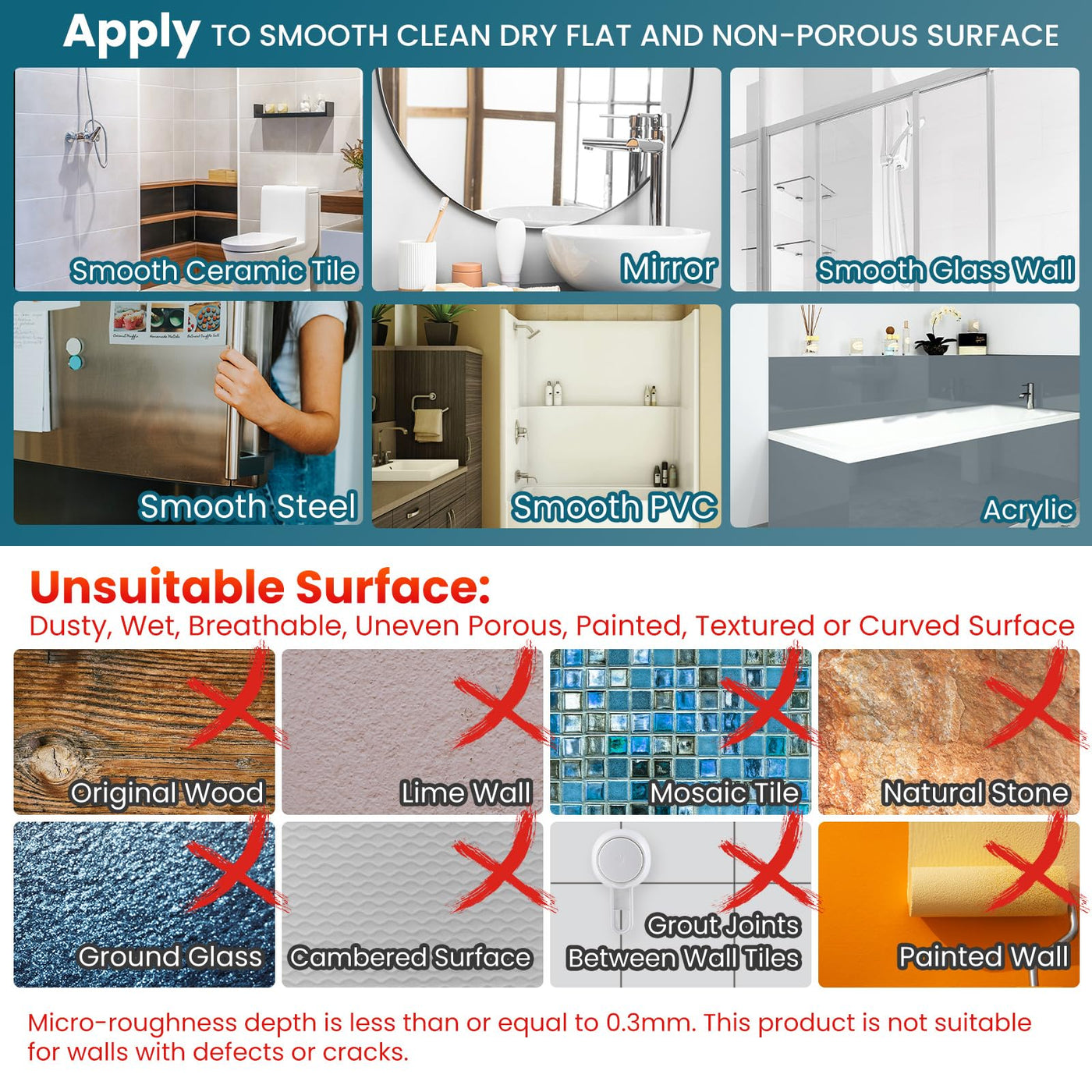 WARM-HEARTED SERVICE: The suction cup of bathroom soap holder is only sticks on smooth, non-porous surfaces like metal, glass, tile, stainless steel and acrylic but not apply to uneven tiles, texture plate, unfinished marble, wallpaper, painted wall, etc. If any of the TAILI product did not meet your requirements, simply contact us and we'll help to solve it in 24 hours