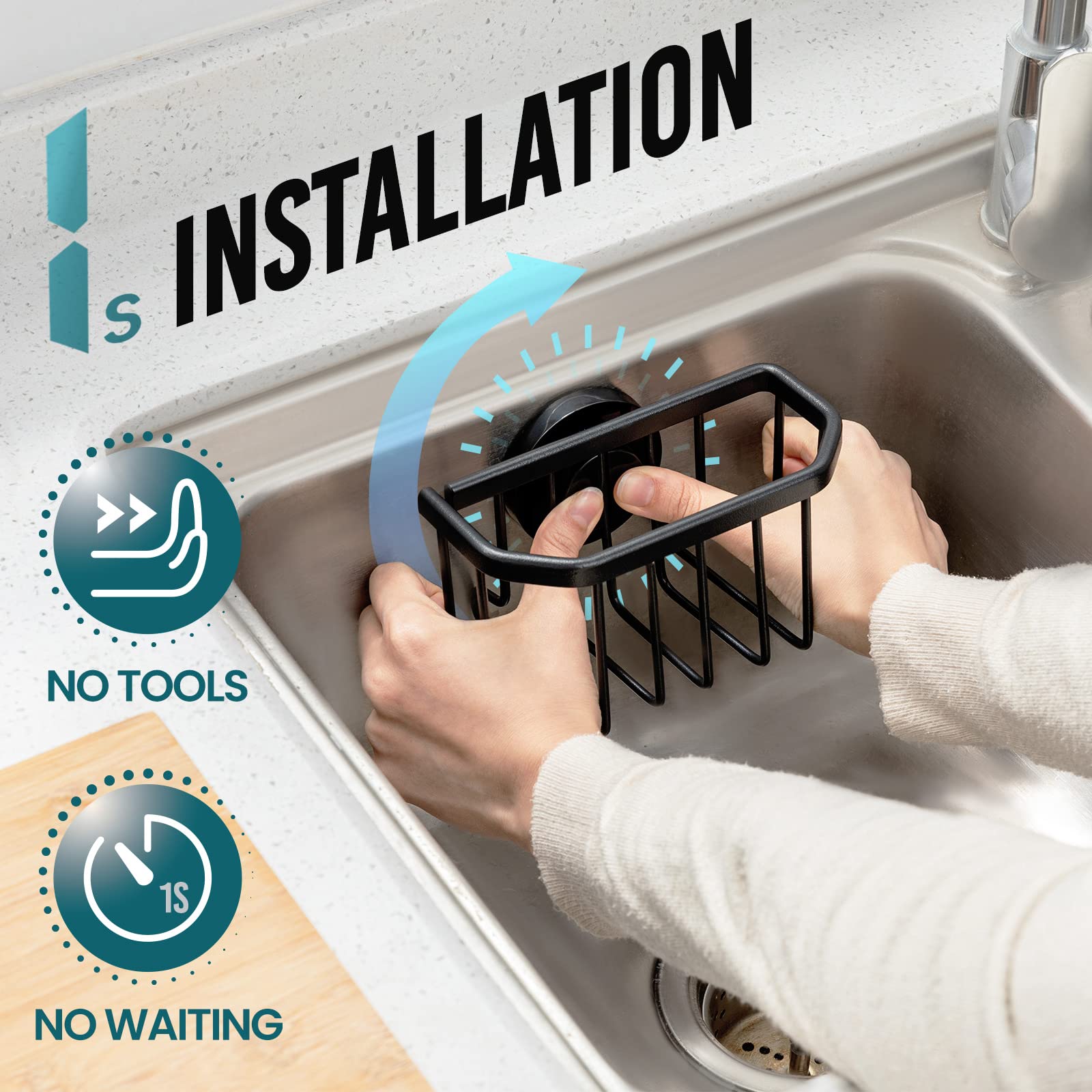 TAILI Sponge Holder with Strong Suction Cup, Dish Sponge Caddy Inside Sink Removable, Rustproof Aluminum for Sponges, Brushes, Stoppers and Scrapers