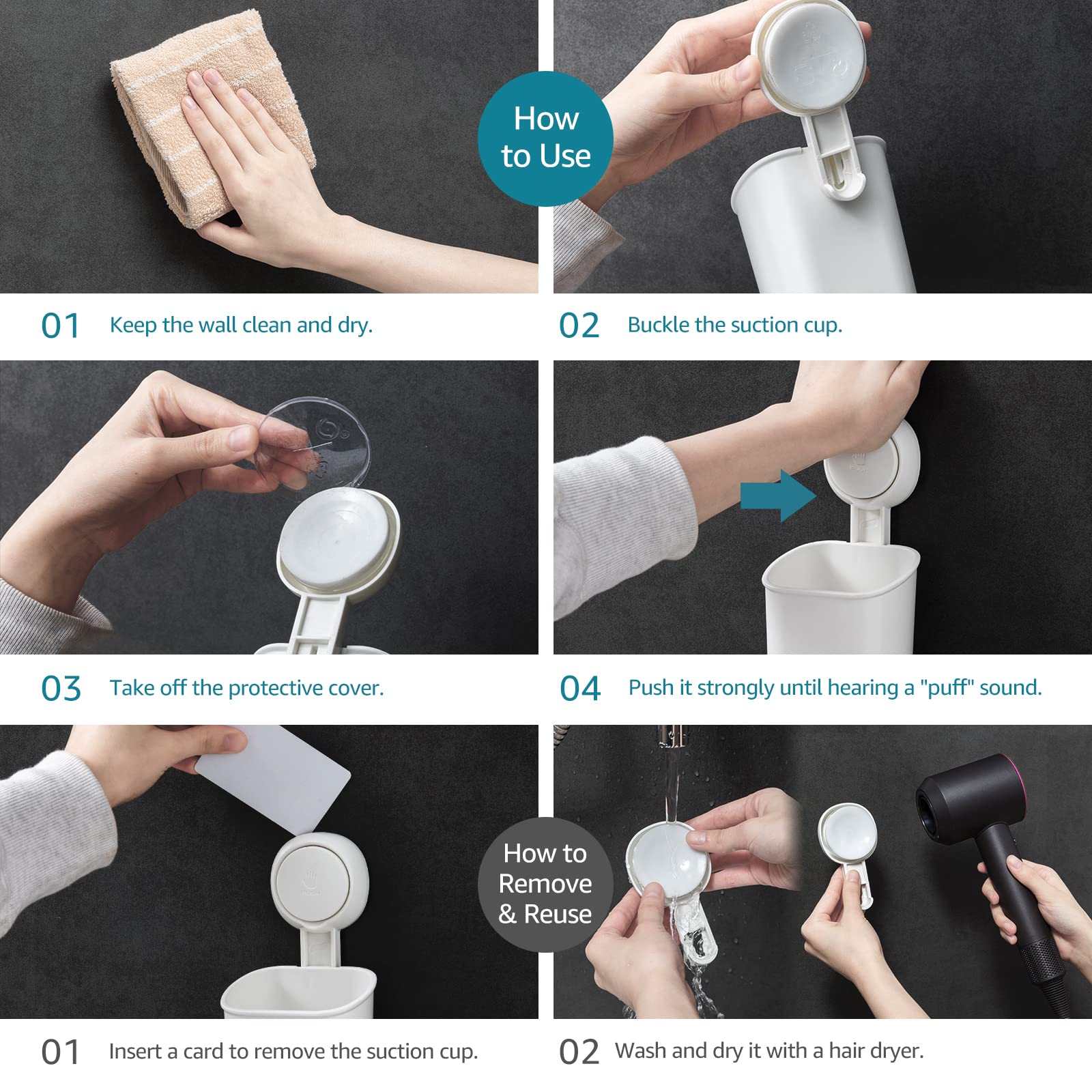 TAILI Suction Toothbrush Holder for Shower Wall, No Nail, No Glue, No Tool! Self-draining Shower Cup for Razor, Toothpaste, Kitchen Tableware, Strong Suction Cup Toothbrush Holders for Bathroom