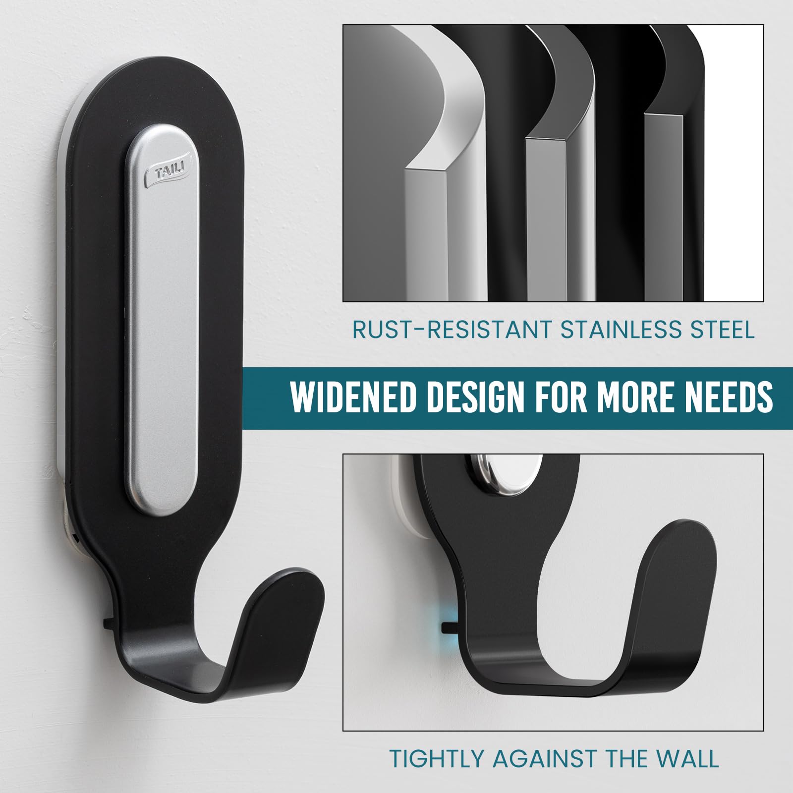 TAILI Damage-Free Hanging Metal Hooks with Adhesive Strips, 2 Hooks and 2 Strips, Heavy Duty Wall Hooks for Home Storages and Decorations